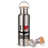 I Love Crete, Stainless steel Silver with wooden lid (bamboo), double wall, 750ml