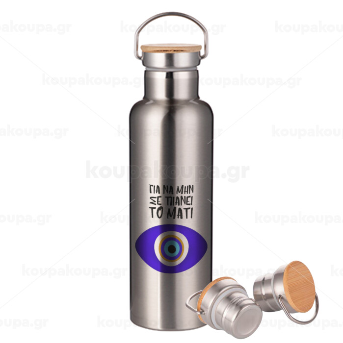 Για να μην σε πιάνει το μάτι, Stainless steel Silver with wooden lid (bamboo), double wall, 750ml