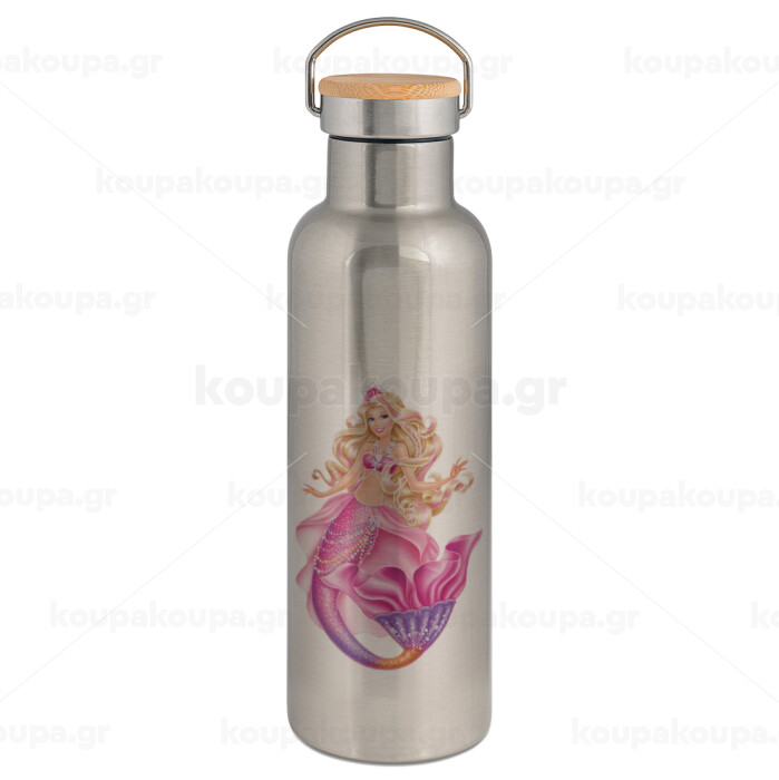 Barbie mermaid , Stainless steel Silver with wooden lid (bamboo), double wall, 750ml