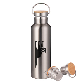 Cat upside down, Stainless steel Silver with wooden lid (bamboo), double wall, 750ml