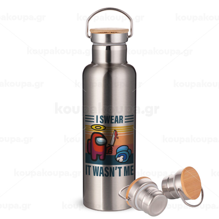Among us, I swear it wasn't me, Stainless steel Silver with wooden lid (bamboo), double wall, 750ml