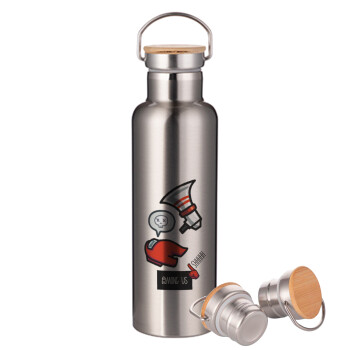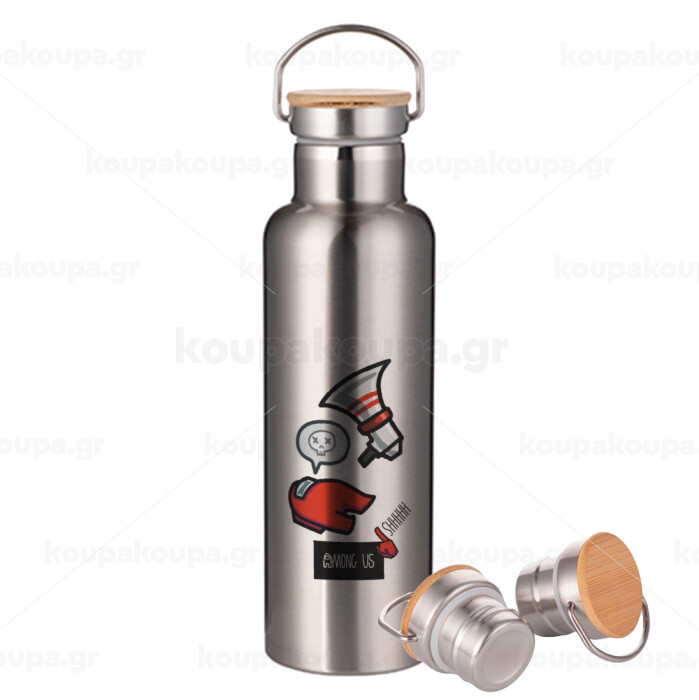 Among US Shhhh!!!, Stainless steel Silver with wooden lid (bamboo), double wall, 750ml
