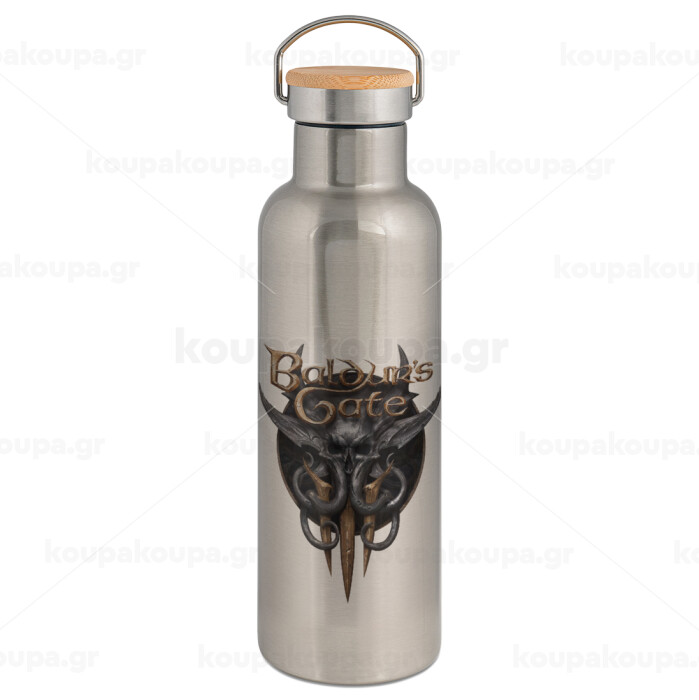 Baldur's Gate, Stainless steel Silver with wooden lid (bamboo), double wall, 750ml