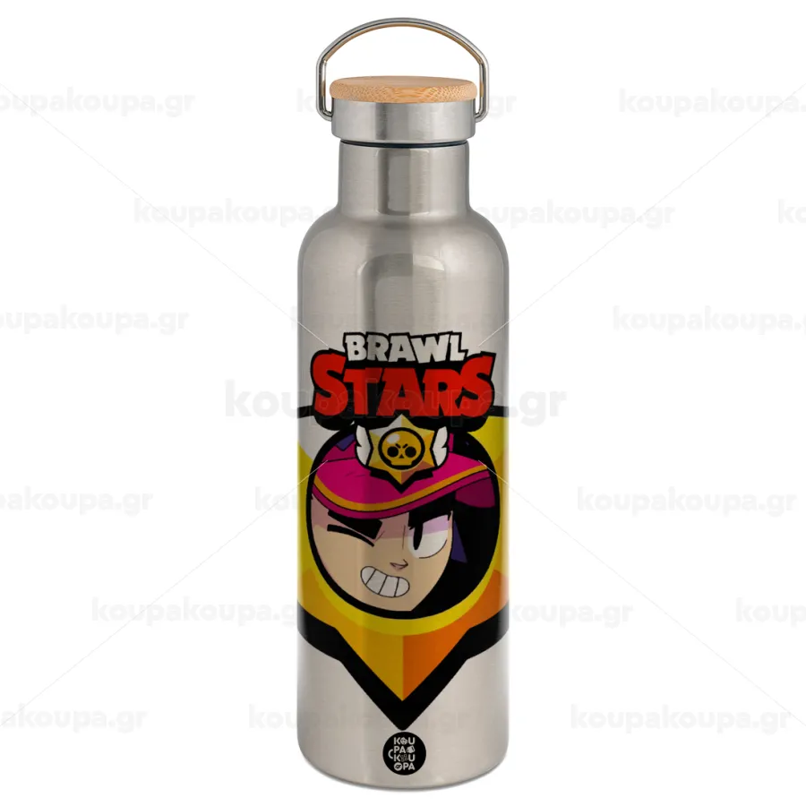 Brawl Stars Fang, Stainless steel Silver with wooden lid (bamboo), double wall, 750ml