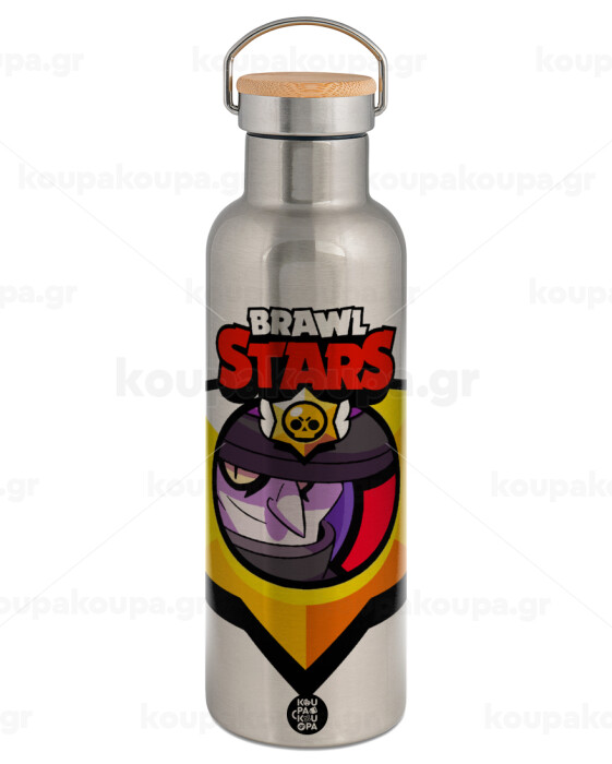 Brawl Stars Mortis, Stainless steel Silver with wooden lid (bamboo), double wall, 750ml