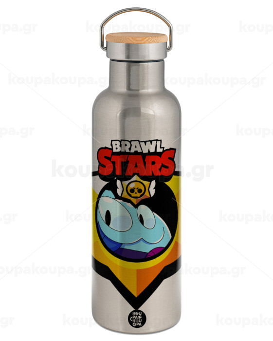 Brawl Stars Squeak, Stainless steel Silver with wooden lid (bamboo), double wall, 750ml