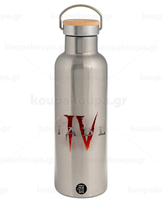 Diablo iv, Stainless steel Silver with wooden lid (bamboo), double wall, 750ml