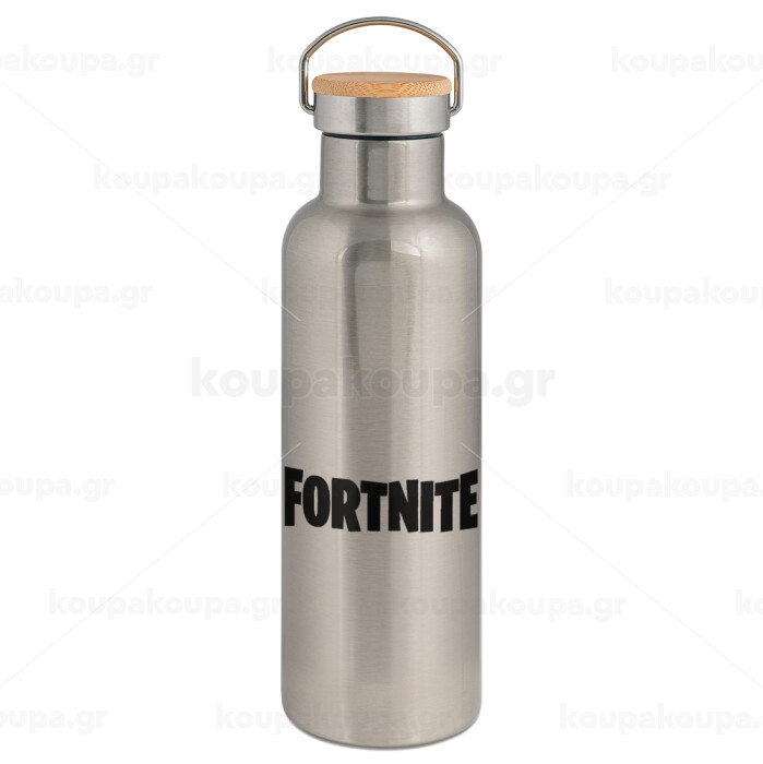 Fortnite landscape, Stainless steel Silver with wooden lid (bamboo), double wall, 750ml