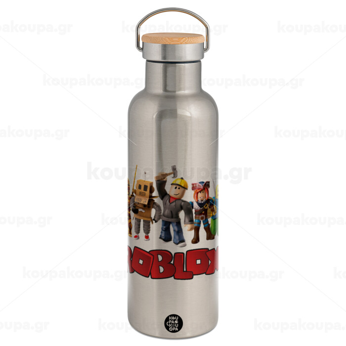 Roblox squad, Stainless steel Silver with wooden lid (bamboo), double wall, 750ml