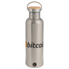 Bitcoin Crypto, Stainless steel Silver with wooden lid (bamboo), double wall, 750ml
