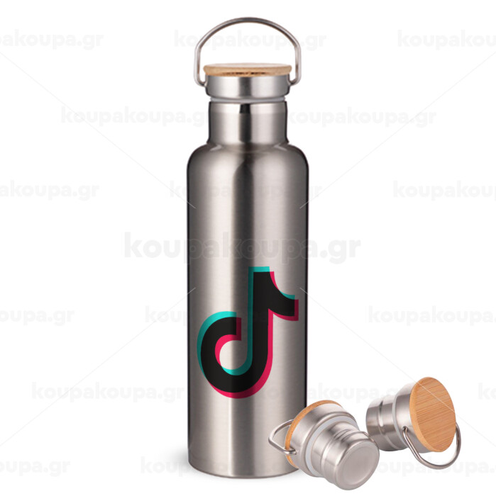 tik tok, Stainless steel Silver with wooden lid (bamboo), double wall, 750ml