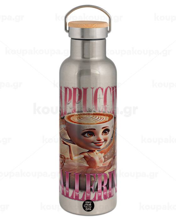 BALLERINA CAPUCHINA FUNK, Stainless steel Silver with wooden lid (bamboo), double wall, 750ml