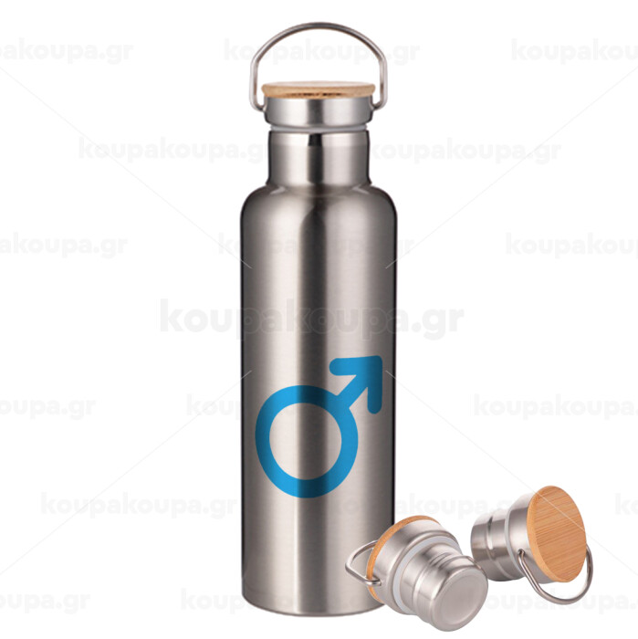 MALE, Stainless steel Silver with wooden lid (bamboo), double wall, 750ml