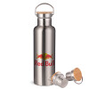 Redbull, Stainless steel Silver with wooden lid (bamboo), double wall, 750ml