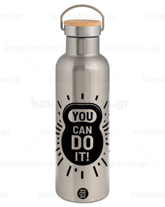 You can do it, Stainless steel Silver with wooden lid (bamboo), double wall, 750ml