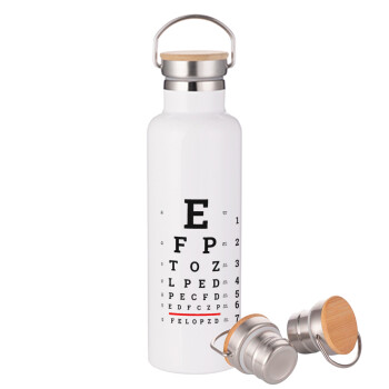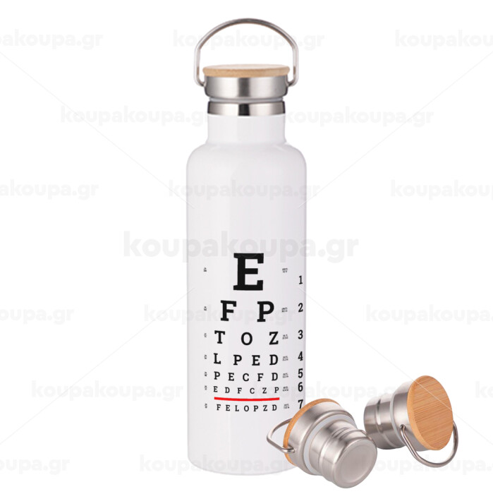 EYE test chart, Stainless steel White with wooden lid (bamboo), double wall, 750ml