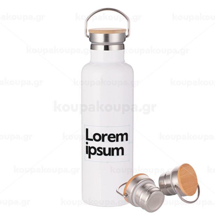 Lorem ipsum, Stainless steel White with wooden lid (bamboo), double wall, 750ml