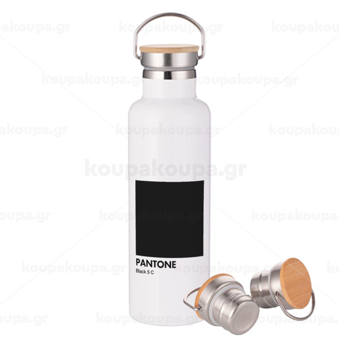 Pantone Black, Stainless steel White with wooden lid (bamboo), double wall, 750ml