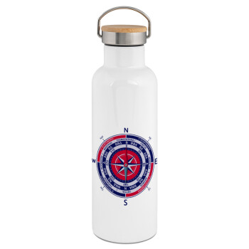 Wind compass, Stainless steel White with wooden lid (bamboo), double wall, 750ml