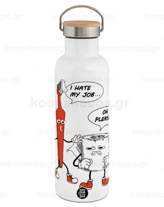 I hate my job, Stainless steel White with wooden lid (bamboo), double wall, 750ml
