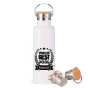 World's best boss stars, Stainless steel White with wooden lid (bamboo), double wall, 750ml