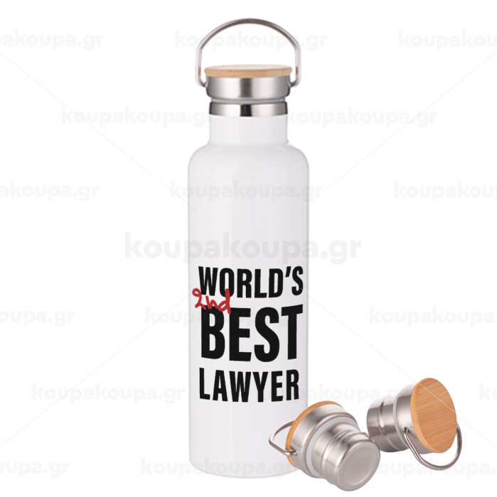 2nd, World Best Lawyer , Stainless steel White with wooden lid (bamboo), double wall, 750ml