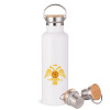 Byzantine Empire, Stainless steel White with wooden lid (bamboo), double wall, 750ml