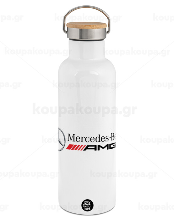 AMG Mercedes, Stainless steel White with wooden lid (bamboo), double wall, 750ml