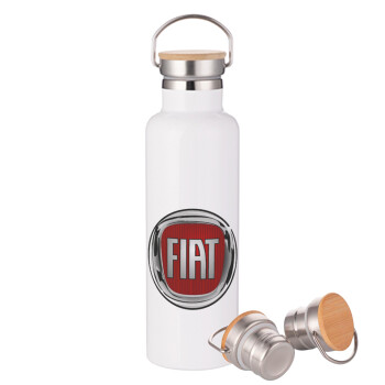FIAT, Stainless steel White with wooden lid (bamboo), double wall, 750ml