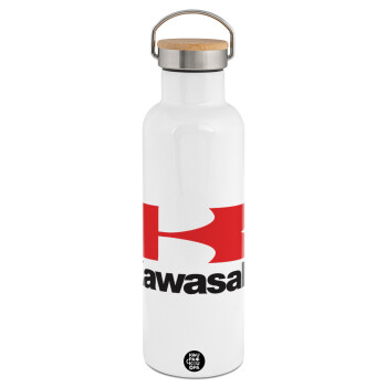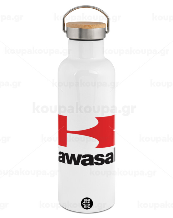 Kawasaki, Stainless steel White with wooden lid (bamboo), double wall, 750ml
