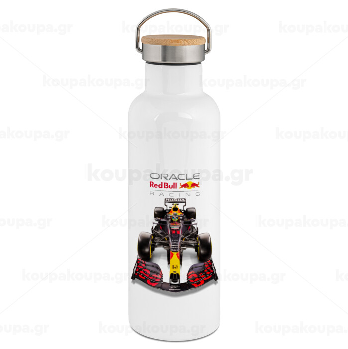 Redbull Racing Team F1, Stainless steel White with wooden lid (bamboo), double wall, 750ml