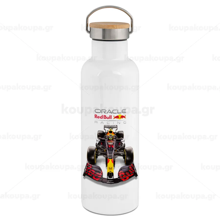 Redbull Racing Team F1, Stainless steel White with wooden lid (bamboo), double wall, 750ml