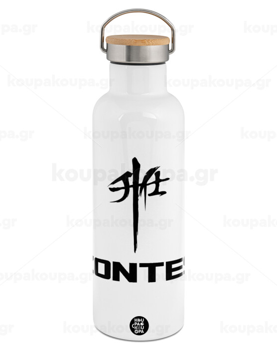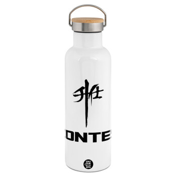 ZONTES, Stainless steel White with wooden lid (bamboo), double wall, 750ml