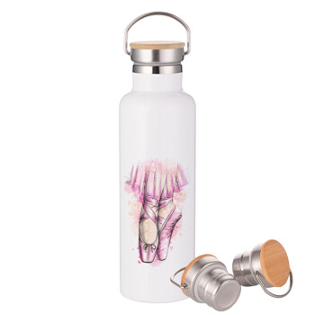 Ballerina shoes, Stainless steel White with wooden lid (bamboo), double wall, 750ml