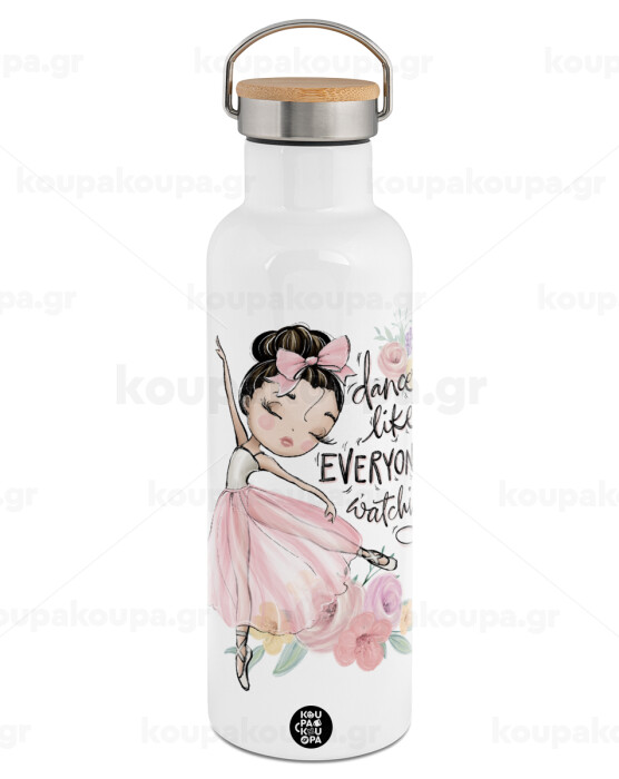Dance Like everyone's watching, Stainless steel White with wooden lid (bamboo), double wall, 750ml