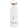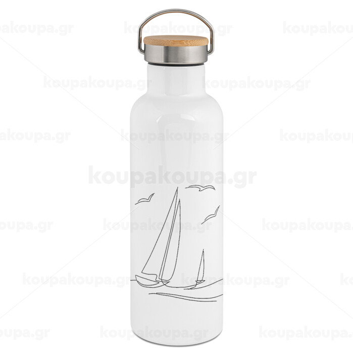 Sailing, Stainless steel White with wooden lid (bamboo), double wall, 750ml