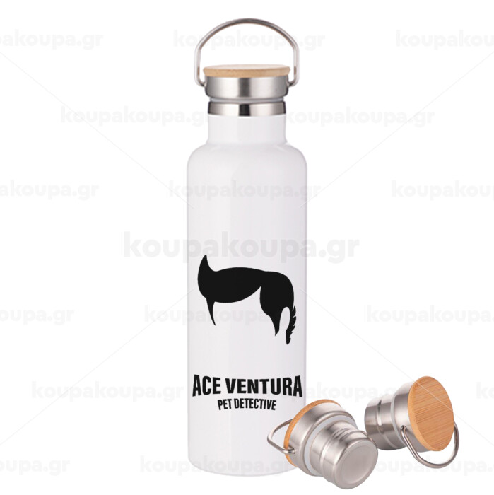 Ace Ventura Pet Detective, Stainless steel White with wooden lid (bamboo), double wall, 750ml