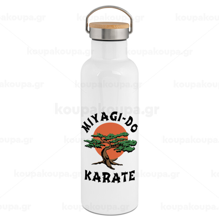 Miyagi-do karate, Stainless steel White with wooden lid (bamboo), double wall, 750ml