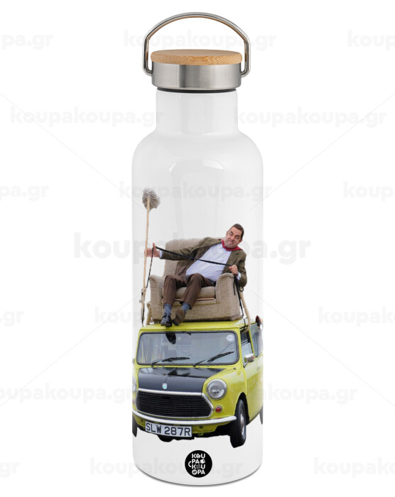 Mr. Bean mini 1000, Stainless steel White with wooden lid (bamboo), double wall, 750ml