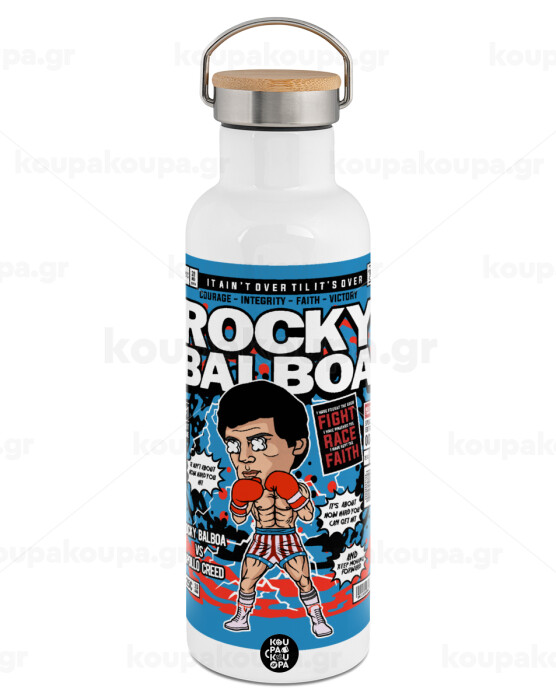 Rocky Balboa, Stainless steel White with wooden lid (bamboo), double wall, 750ml