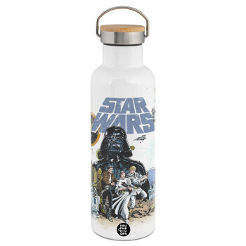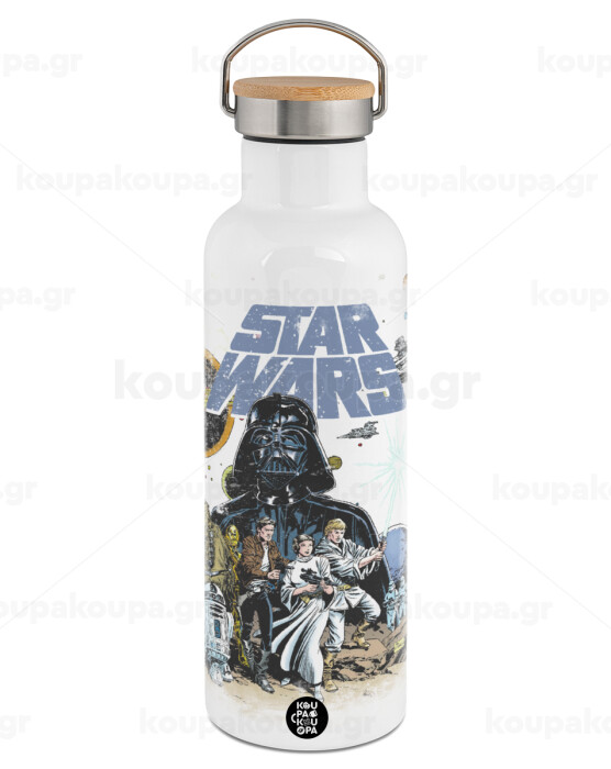 Star Wars, Stainless steel White with wooden lid (bamboo), double wall, 750ml
