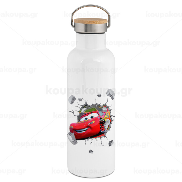 Brick McQueen, Stainless steel White with wooden lid (bamboo), double wall, 750ml