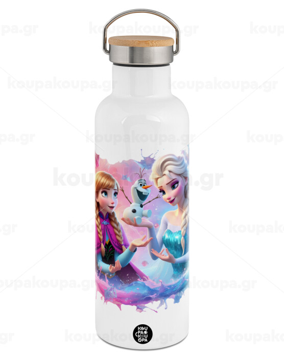 Elsa & Anna Princess, Stainless steel White with wooden lid (bamboo), double wall, 750ml
