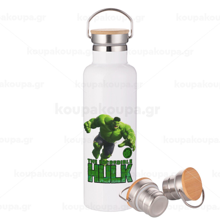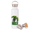 Hulk, Stainless steel White with wooden lid (bamboo), double wall, 750ml