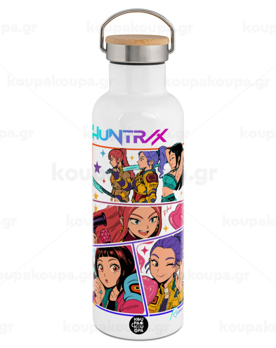 Huntrix Kpop Girls, Stainless steel White with wooden lid (bamboo), double wall, 750ml