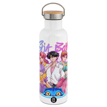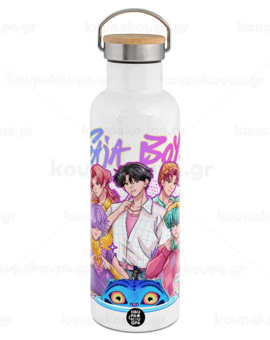 Huntrix Saja Boys, Stainless steel White with wooden lid (bamboo), double wall, 750ml