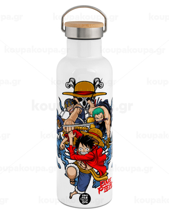 One Piece, Stainless steel White with wooden lid (bamboo), double wall, 750ml