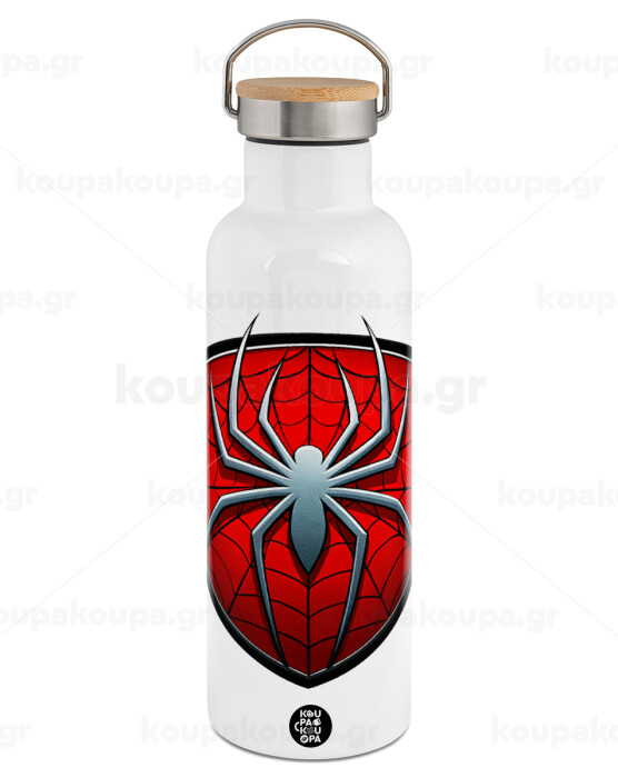 Spider-man, Stainless steel White with wooden lid (bamboo), double wall, 750ml