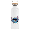 Stitch hello!!!, Stainless steel White with wooden lid (bamboo), double wall, 750ml