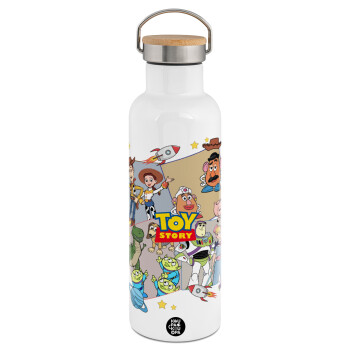 toystory characters, Stainless steel White with wooden lid (bamboo), double wall, 750ml